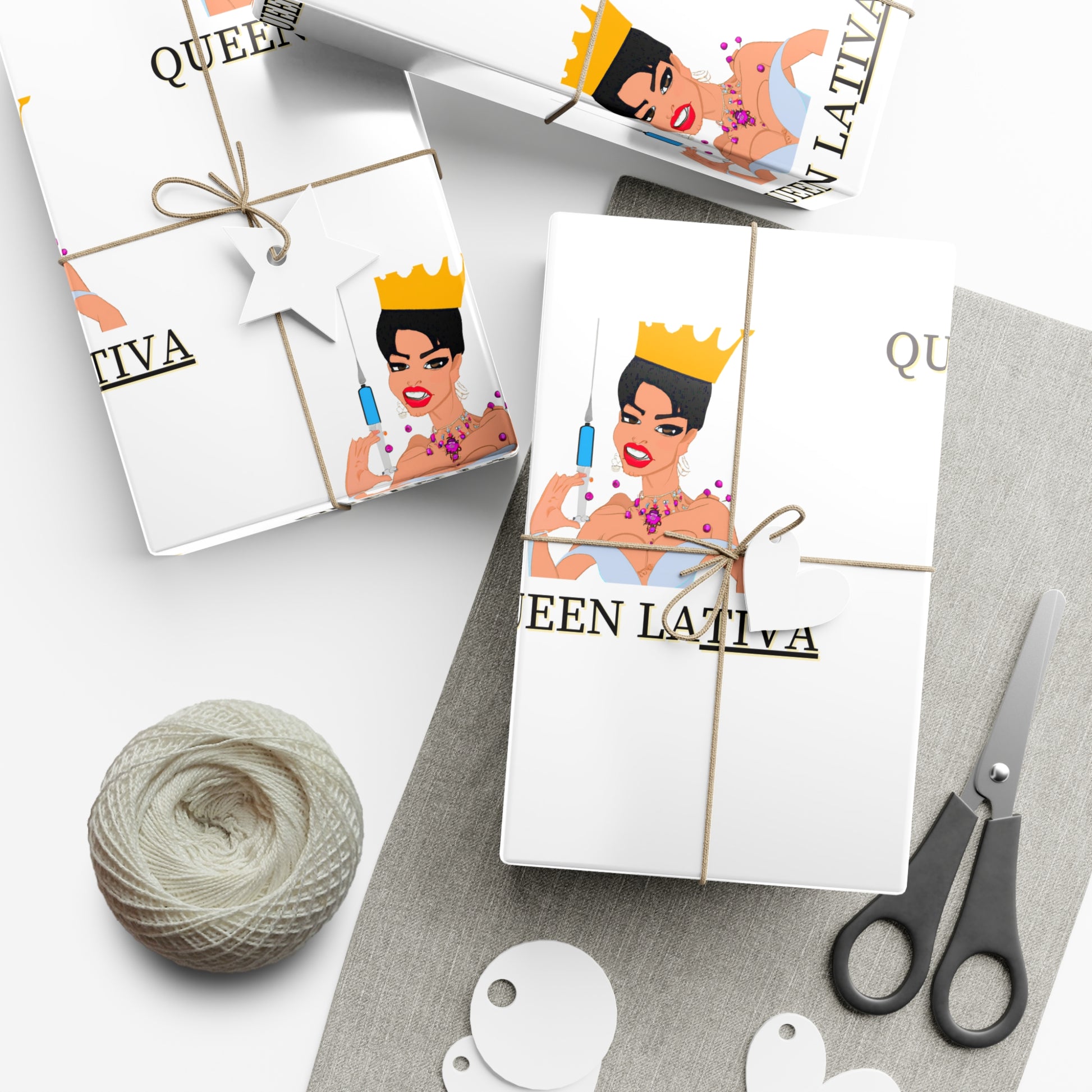"Unwrap the Laughter: 'Queen Lativa' Custom Matte Gift Wrapping Paper! ππ