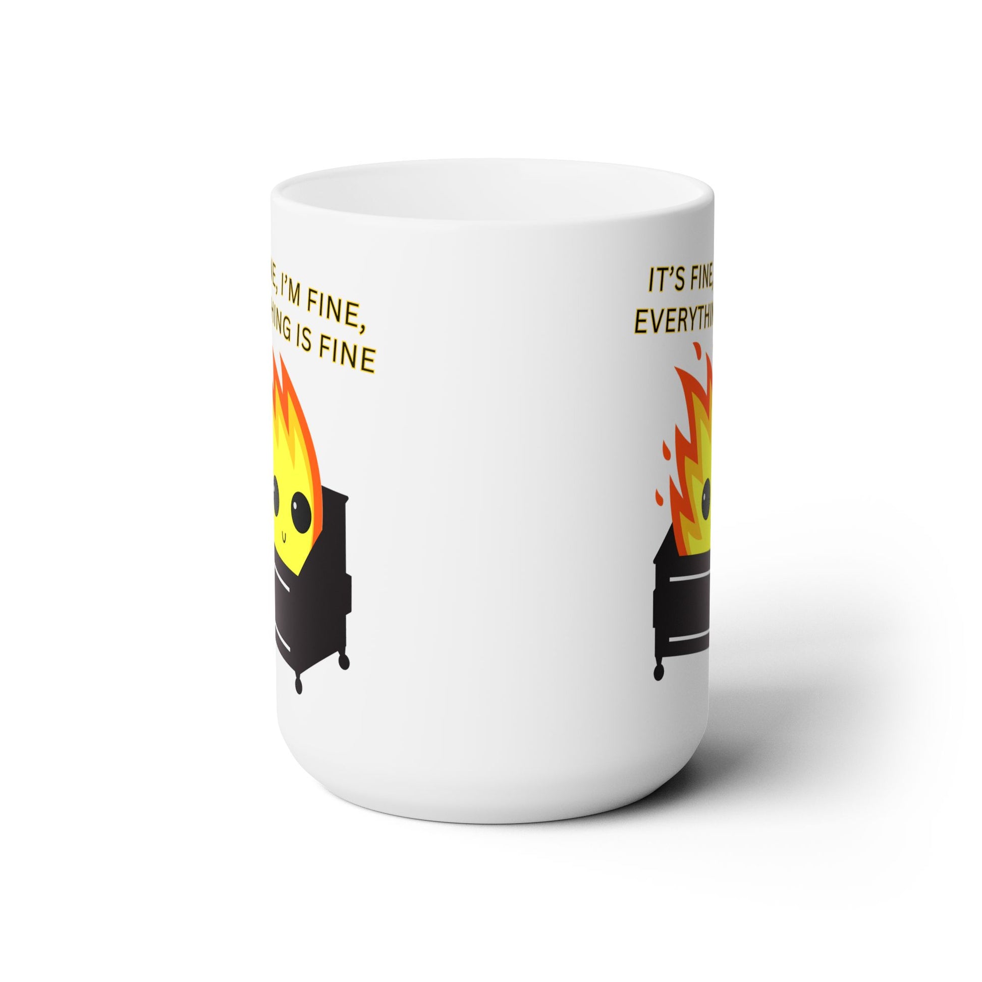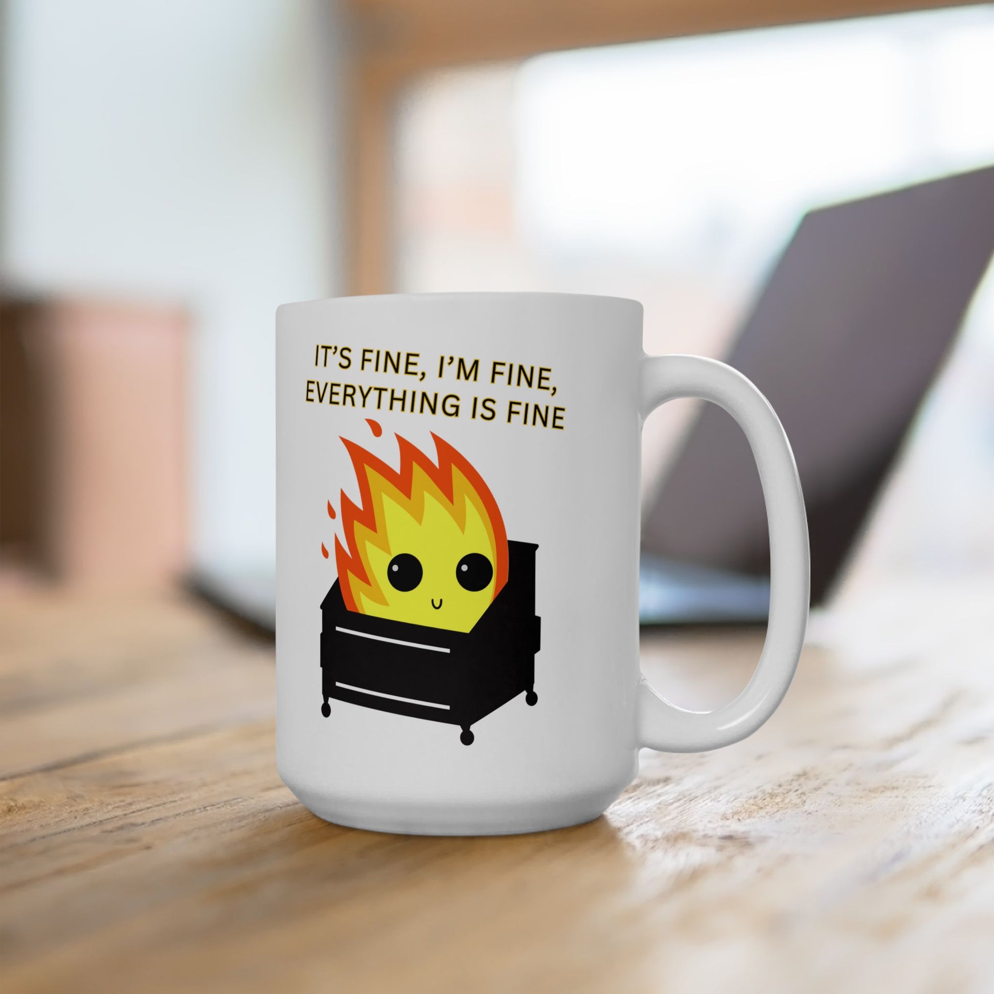 Rx for Laughter, It's Fine, I'm Fine, Everything is Fine, Dumpster Fire 15oz Mug, Because Life's Chaos Deserves a Dose of Humor, Ceramic