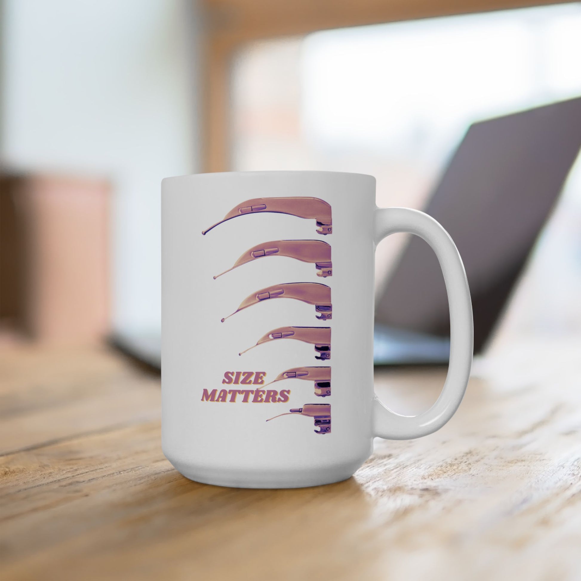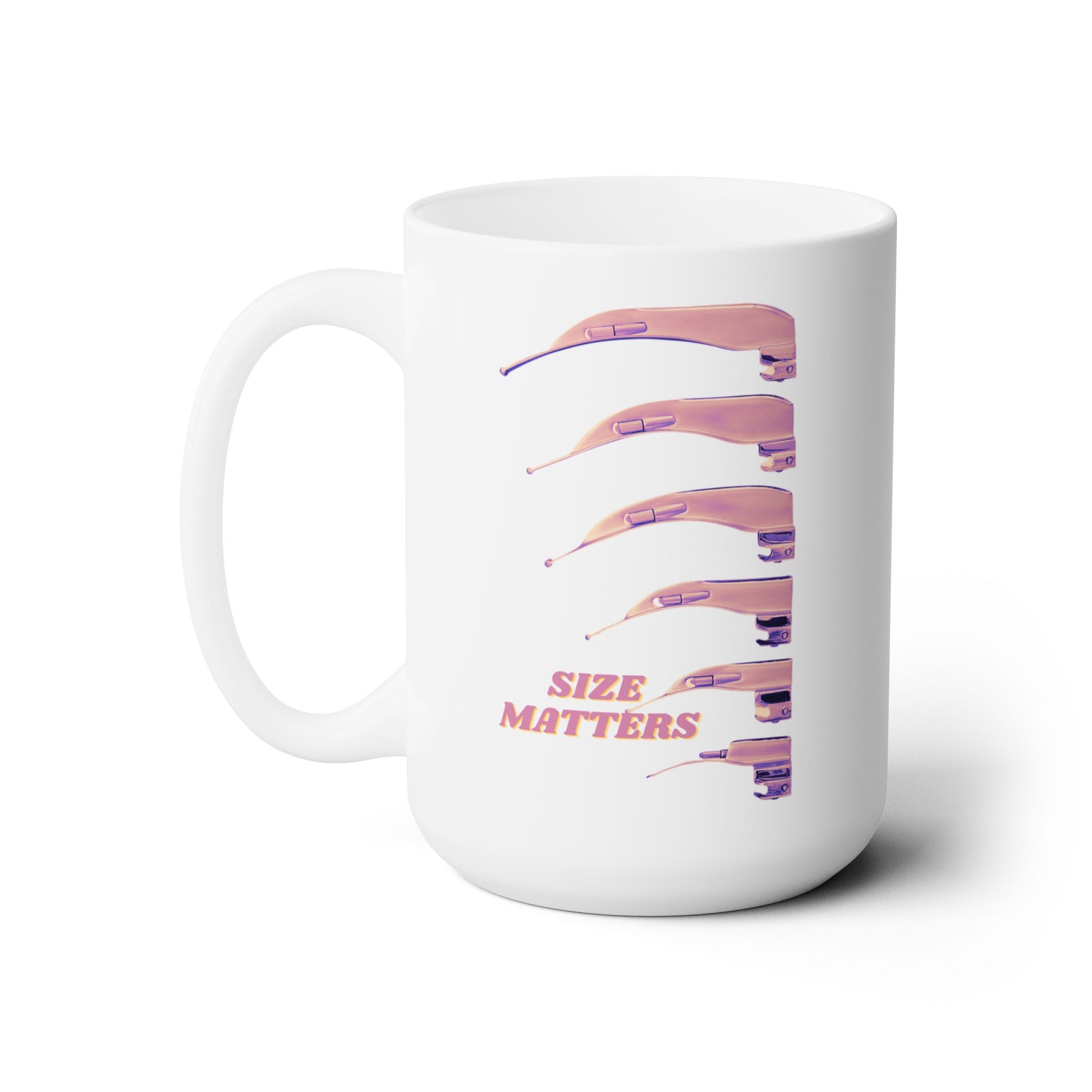 Size Matters, A Naughty Nod to Airway Mastery, 15oz Mug with Sequential Mac Blades for the Connoisseur of Laughter, Ceramic, Anesthesia