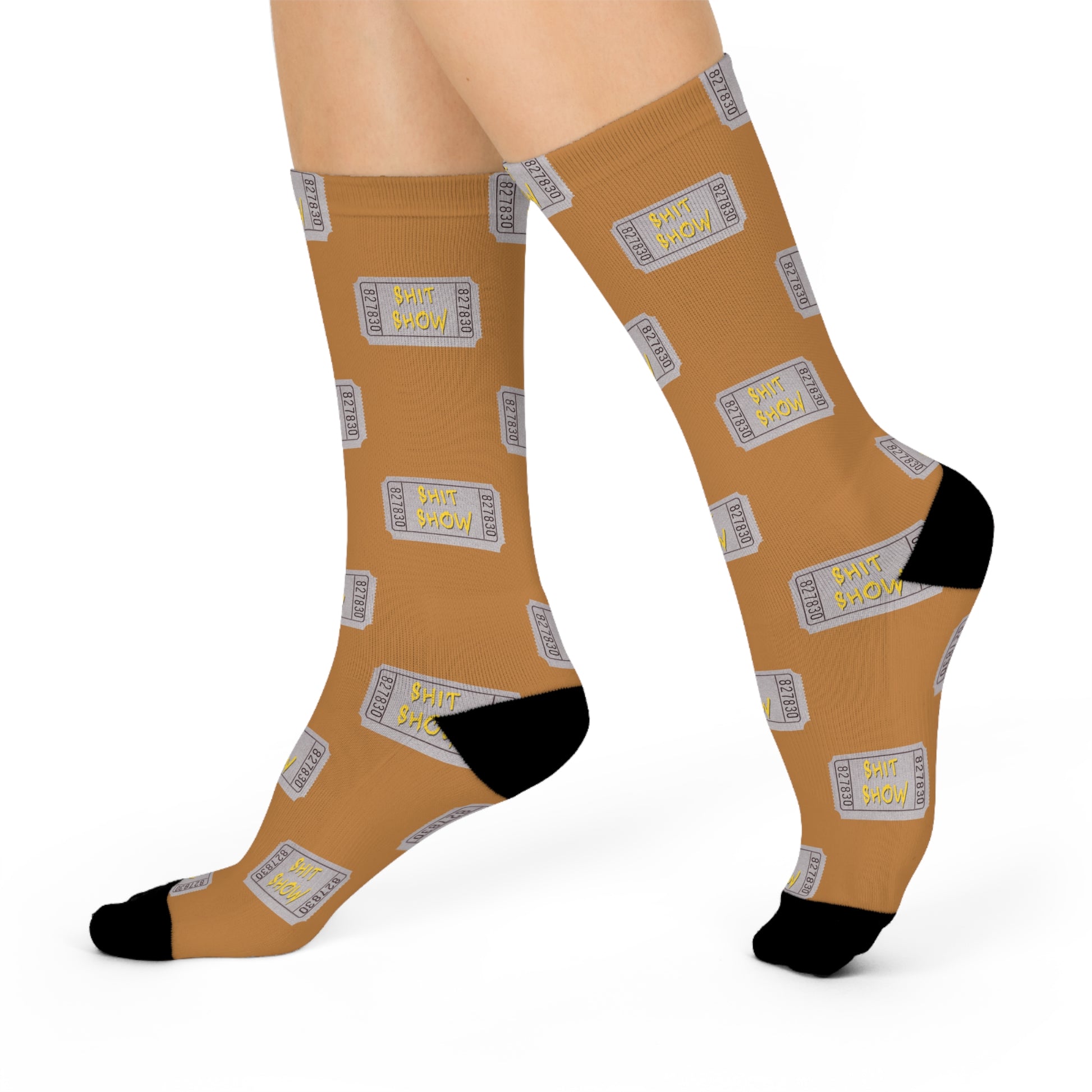 Picture this: A pair of socks, the color of a well-brewed cup of coffee, adorned with ticket stub patterns that scream "Shit Show" in the quirkiest font. It's not just a design; it's a testament to the unpredictable drama that unfolds in the hospital arena.